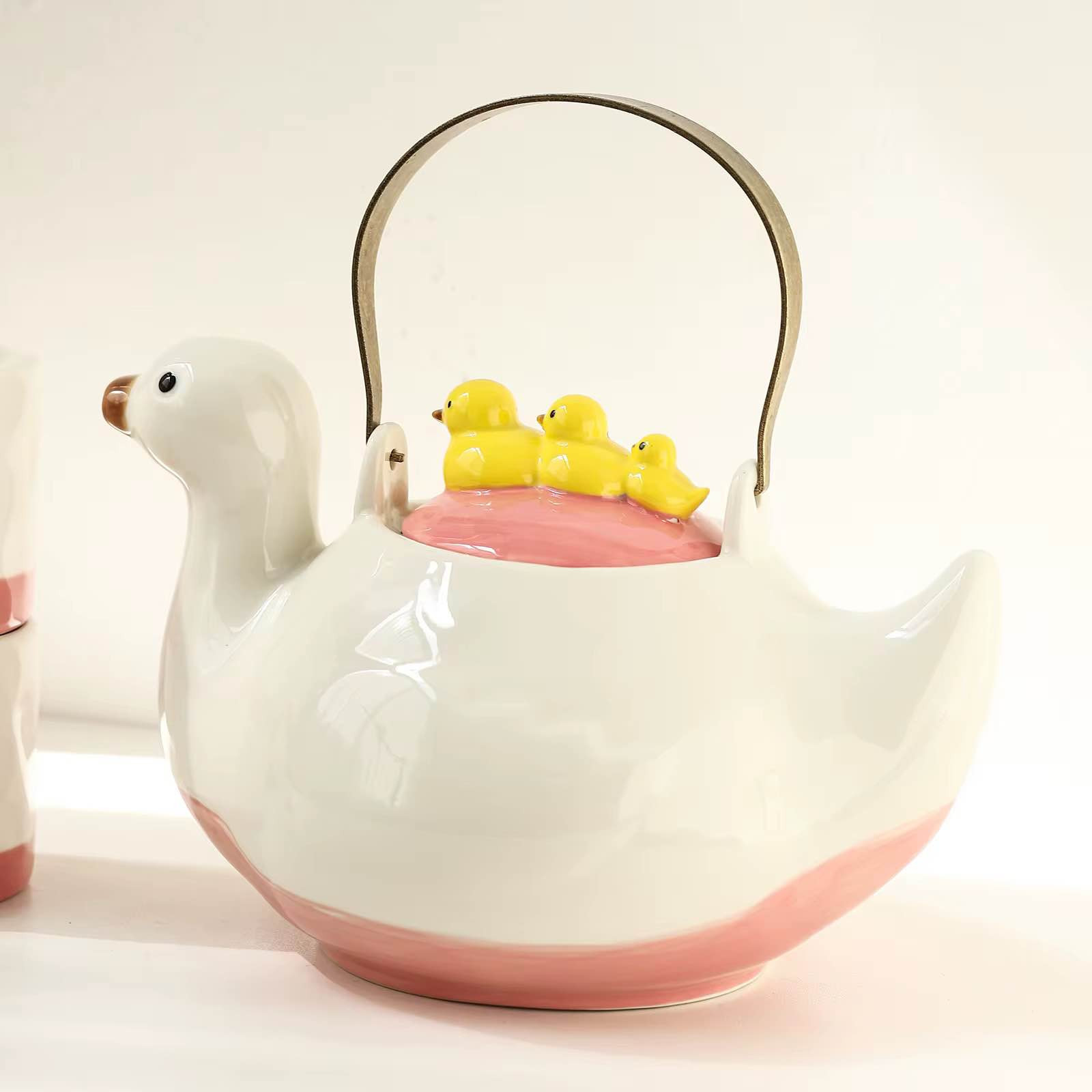 قوري شاي • ٣ بطات • مقبض ذهبي