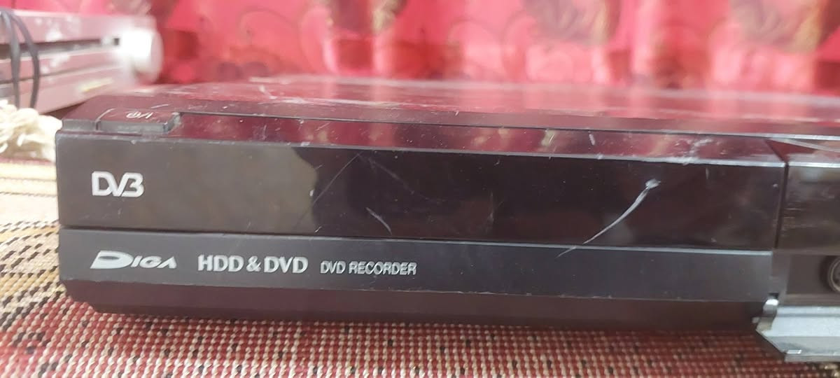 جهاز دي في دي هذا الجهاز هو Panasonic DMR-EX768، وهو مسجل DVD مع قرص صلب مدمج. سعة التخزين: يحتوي على قرص صلب (HDD) بسعة 160 جيجابايت لتسجيل البرامج التلفزيونية والأفلام. دقة الفيديو: يدعم رفع دقة الفيديو (Up-conversion) إلى 1080p عبر منفذ HDMI لعرض صورة عالية الوضوح. تقنية الألوان: يدعم تقنية Deep Colour لتحسين جودة الألوان ودقتها. ميزات إضافية: يتضمن موالف Freeview مدمج، ويسمح بنقل التسجيلات من القرص الصلب إلى أقراص DVD. السعر ٥٠ ***********