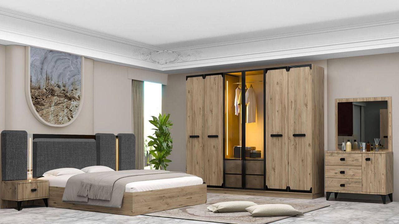 موديل فيروزه • ٥ قطع • سرير مخزن ١٨٠×٢٠٠