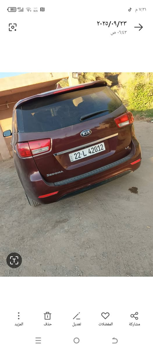 كيا سيدونا موديل ٢٠١٧ مواLX صفات لون كرزي وارد امريكي حادثه بين بيبان رقم اربيل بسمي هزه وارقام كله جديده محرك وكير وتبريد مكفولات مكانه /بابل شوملي /السعر ١٧٠ وبيه مجال رقم الهاتف ***********