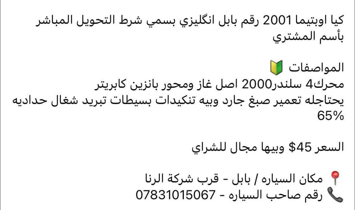 اوبتيما 2001 تفاصيل كامله داخل الصور السعر 38 وبيه مجال بسيط مكاني بابل قرب شركة الرنا ***********