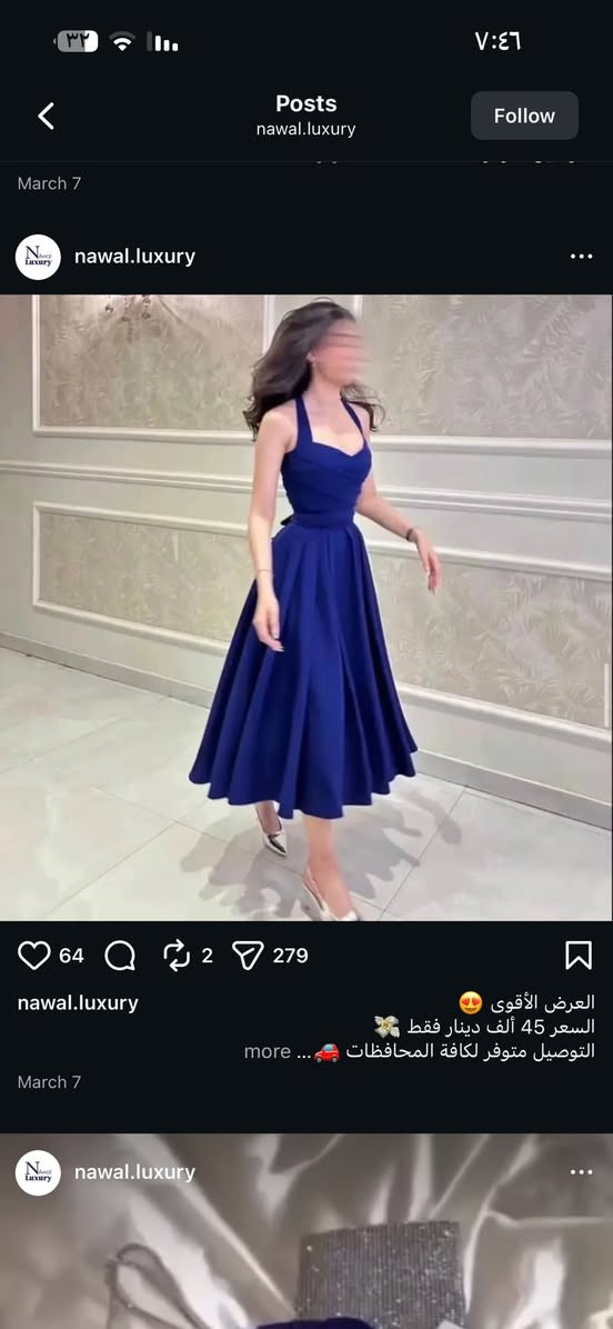 بنات هذا الفستان وصيته واليوم وصلني وجنت مموجودة اهلي استلمو من رجعت شفته جايبين قياس 38 اصغر من قياسي وردت ارجعه مقبلو منو تريده والله هو سعرة ب٦٥ اني ابيعه ب٤٠ وجديدة بعدة بالعلاكة مالته **إذا كنت صاحب هذا الإعلان وتريد حذفه لأي سبب، رجاءا أرسل رسالة إلى الدعم الفني**