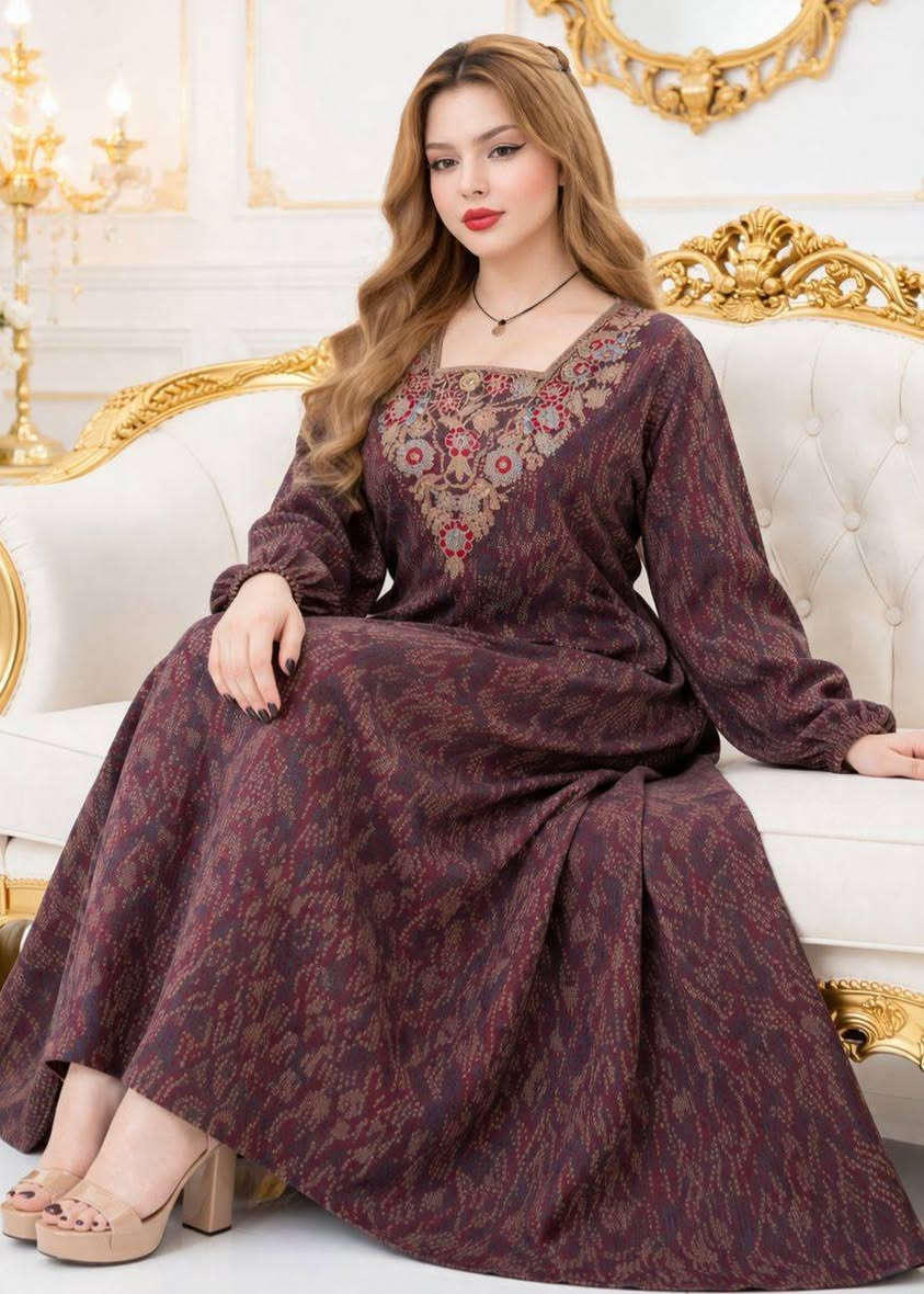 فستان كلوش • كشمير ثري دي • فري سايز ٩٠ كيلو