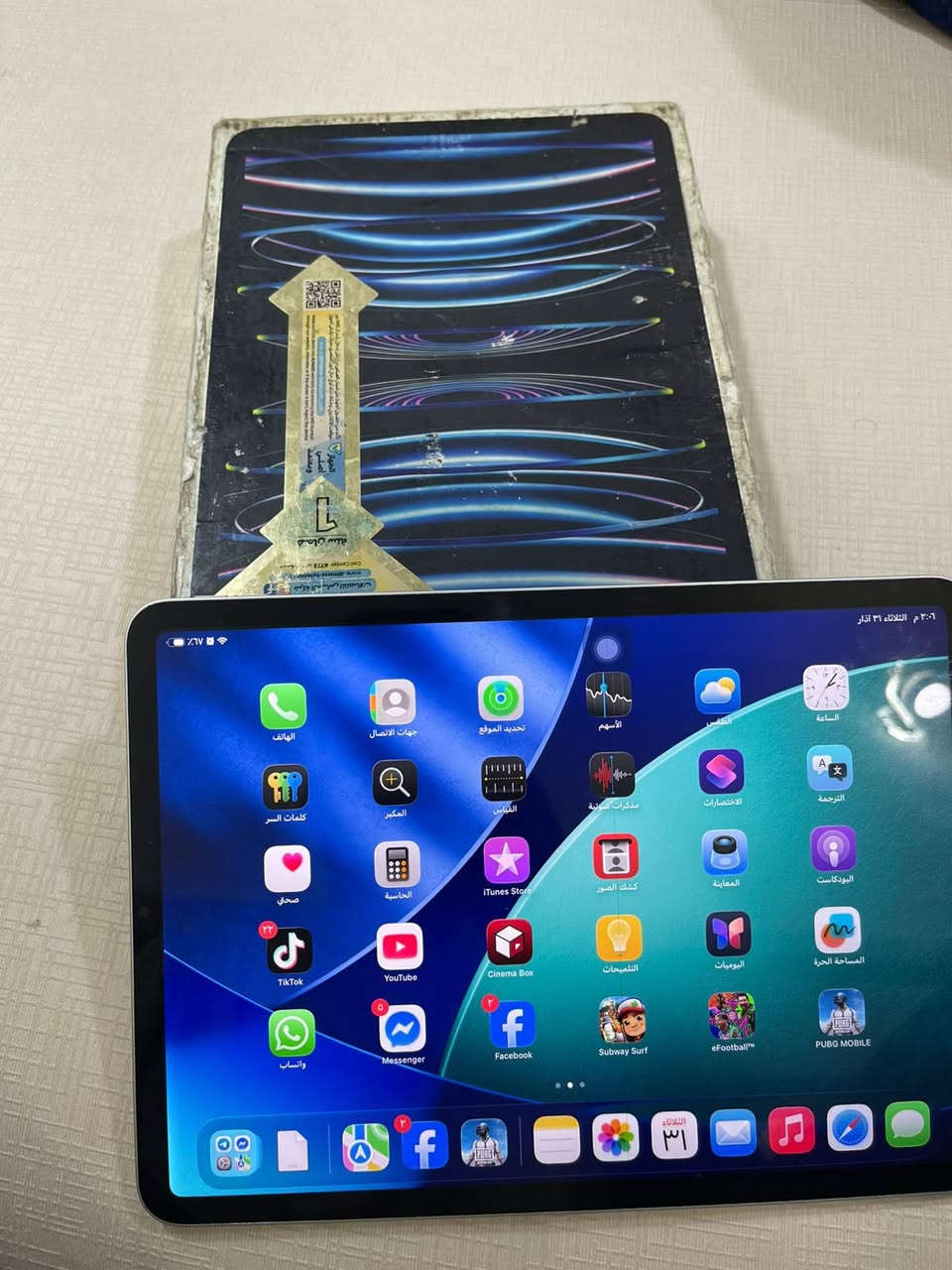 سلام عليكم ايباد برو حجم ١١ اصدار ٢٠٢٣ m2 الجيل الرابع ذاكره ٢٥٦ بطاريه ٨٤ جهاز جداٍ نصيف لا ضربه لا فطر ولا اي شي فقط خط ناعم كلش يروح ويجي جهاز ببجي فول ١٢٠ فريم شرط ابيع من البيت بضمان موجود ويا كارتونه السعر ٤٧٥ مكاني بغداد العبيدي او فلكه حي النصر ***********