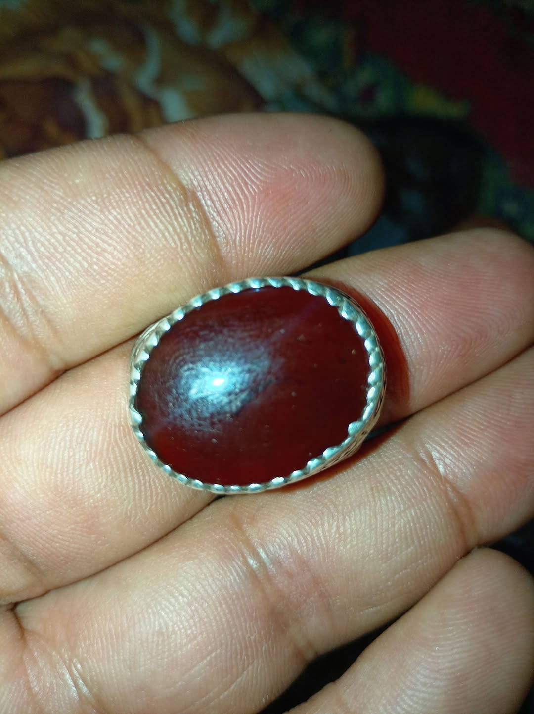 خاتم عقيق يماني • صياغة يدوية • حجم كبير