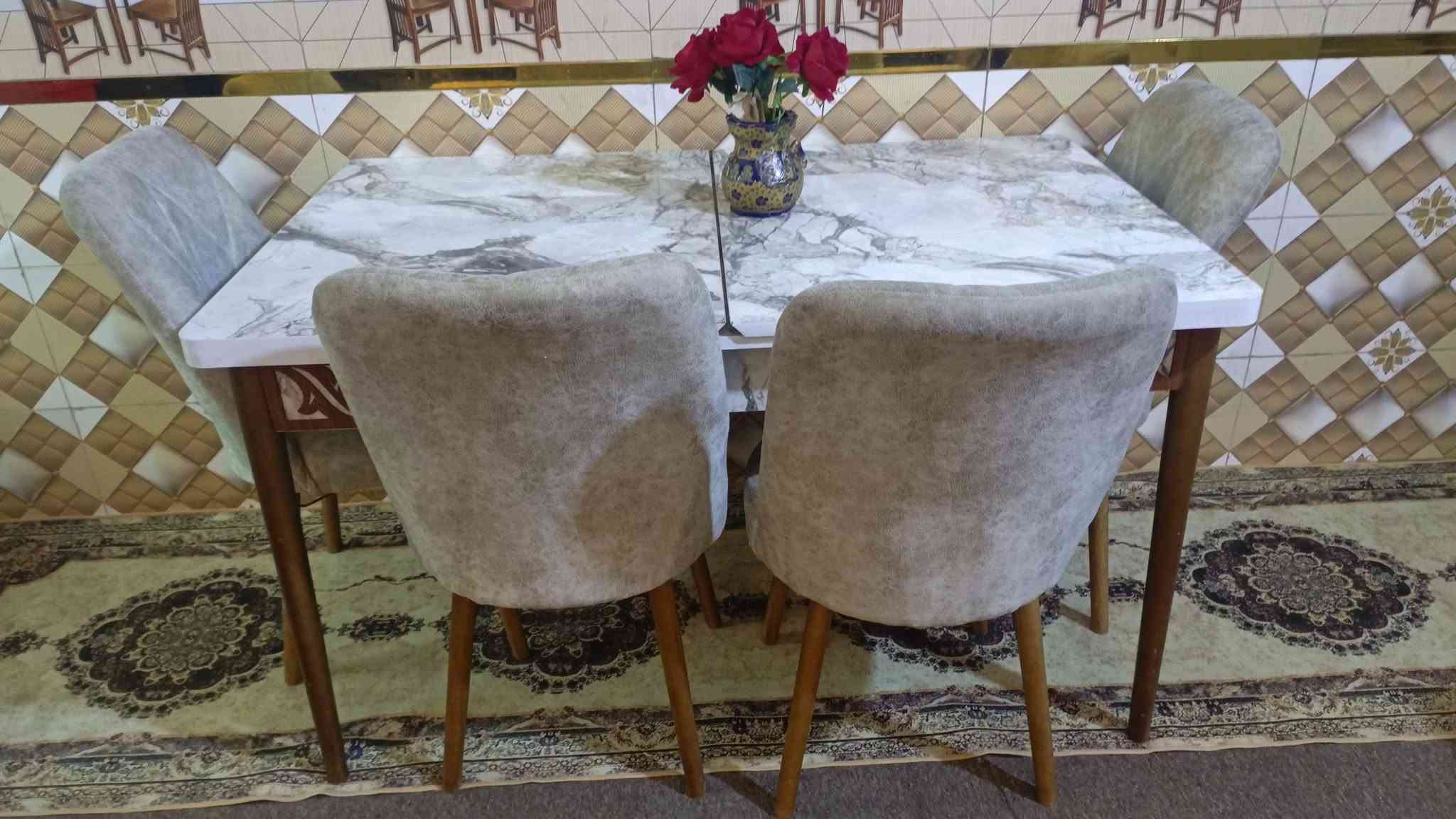 ميز للبيع مع 6 كراسي كلش نظيف السعر ميه وخمسه وعشرين **إذا كنت صاحب هذا الإعلان وتريد حذفه لأي سبب، رجاءا أرسل رسالة إلى الدعم الفني**