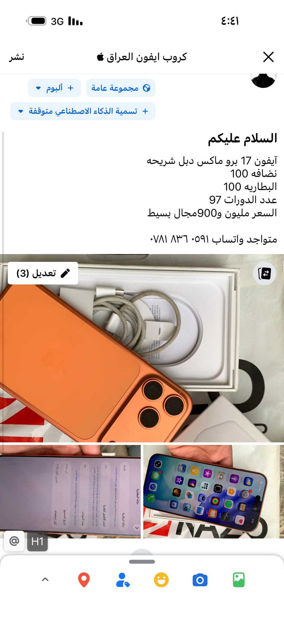 آيفون ١٧ برو ماكس • نظافة ١٠٠ • العبيدي