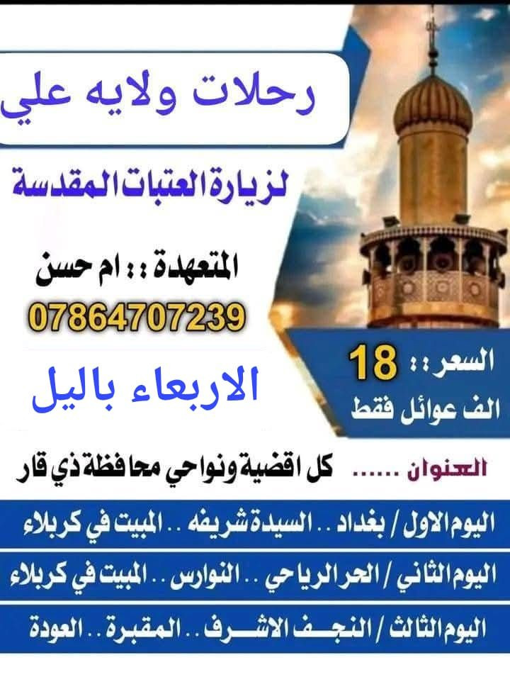 كربلاء اولادمسلم • رحلة ليلتين • الأربعاء 8 ليلاً