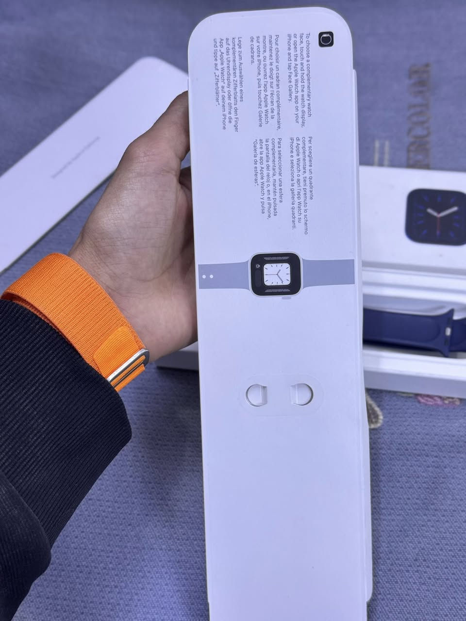 ساعة ابل جيل 6 حجم 44 لون نيلي (ازرك) بطارية 100 مشحونه 1 مره وحده  فقط ما مستخدمه ولا ملبوسه بعدهي جديدة فقط مفتوحة من الباكيت كامل ملحقات مع الشاحنه وسير الاصلي كلش نضيفة