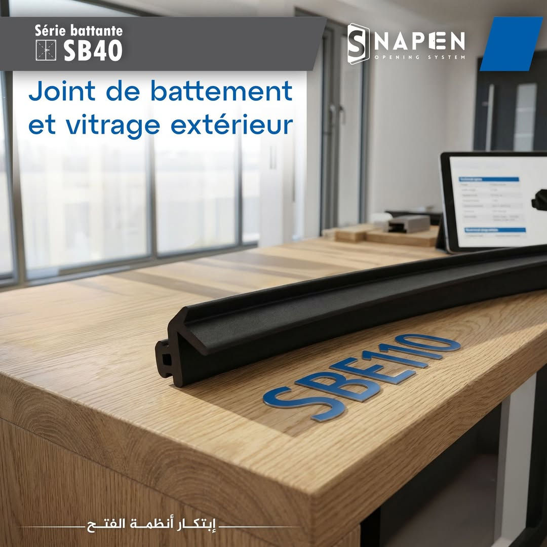 ✨️متوفر لدينا في المجموعة SB40 : 🔹 Joint de Battement et vitrage extérieur Jointure_SB40_SBE110 ✨ اكتشفوا الحل المزدوج الذي يجمع بين الجودة والأداء العالي! 🔸 استعمال مزدوج : ✅ Joint vitrage extérieur 👈 لعزل محكم للزجاج الخارجي ✅ Joint de frappe 👈 لإحكام غلق ممتاز للأبواب والشبابيك 🔹 مصنوع من EPDM عالي الجودة، لمقاومة فائقة للعوامل الجوية والأشعة فوق البنفسجية وتقلبات درجات الحرارة. 💧💨 عزل ممتاز ضد الهواء، الغبار والماء. 🔧 تركيب سهل وعمر افتراضي طويل. 📌 SBE110 اختيار المحترفين للإحكام والعزل الخارجي. 📞 للمزيد من المعلومات أو الطلبات، تواصلوا معنا الآن! #SNAPEN #SBE110 #عزل_خارجي #EPDM #أختام_عالية_الجودة #بناء **إذا كنت صاحب هذا الإعلان وتريد حذفه لأي سبب، رجاءا أرسل رسالة إلى الدعم الفني**
