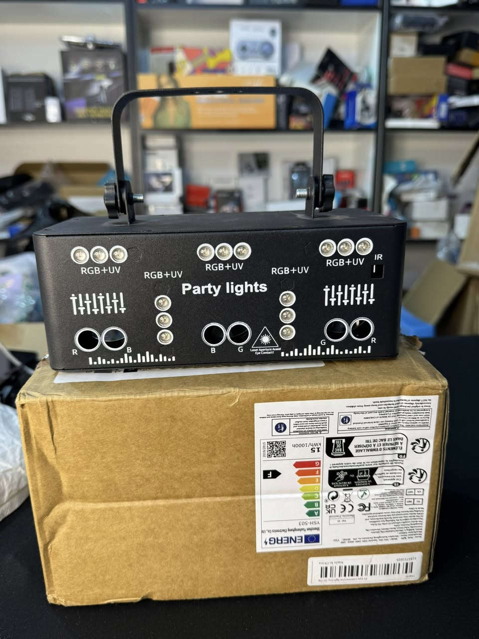 هذا المنتج هو إضاءة حفلات LED طراز YSH-503 من إنتاج شركة Shenzhen Fushenghong Electronics Co. يتميز بإضاءة RGB+UV (أحمر، أخضر، أزرق، وفوق بنفسجي). يحتوي على ميزات تحكم متنوعة مثل التحكم في الصوت، وضع الستروب، والوضع الذاتي. يستهلك طاقة بمعدل 15 kWh/1000h. يأتي مع قوس تثبيت قابل للتعديل وهيكل معدني متين خلي سعر وبالعافية **إذا كنت صاحب هذا الإعلان وتريد حذفه لأي سبب، رجاءا أرسل رسالة إلى الدعم الفني**