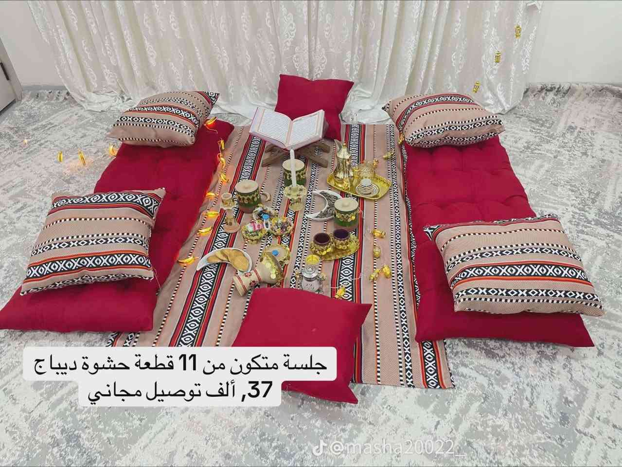 طقم جلسة كامل • ٤ فرش ٤ مخدات • بساط ١٥٠×١٥٠م