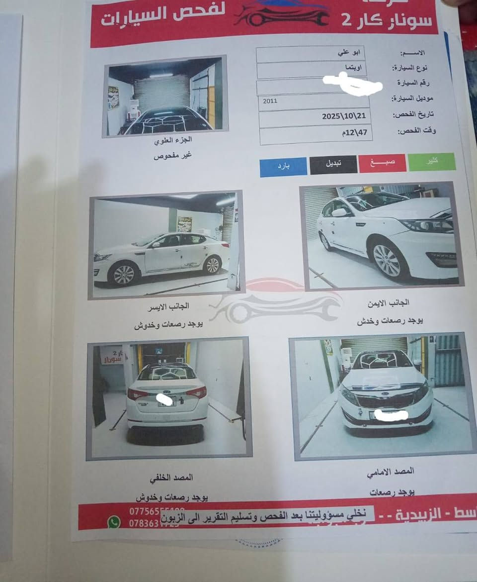 السلام عليكم كيا اوبتيما للبيع رقم اربيل مداور ثاني يوم وارد خليجي فول مواصفات وكفاله مكان واسط كوت تواصل ***********