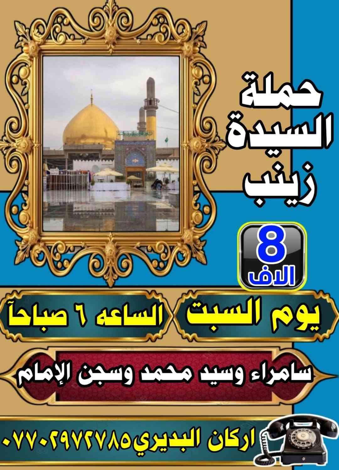 صباح الخير عليكم جميعا جمعه مباركه عليكم عنده رحله الى سامراء وسيد محمد يوم السبت الي حاب يروح الف هلا بي يتصل على هذا الرقم 0770292785ومن عيوني #للجميع باقي التفاصيل في الصورة **إذا كنت صاحب هذا الإعلان وتريد حذفه لأي سبب، رجاءا أرسل رسالة إلى الدعم الفني**