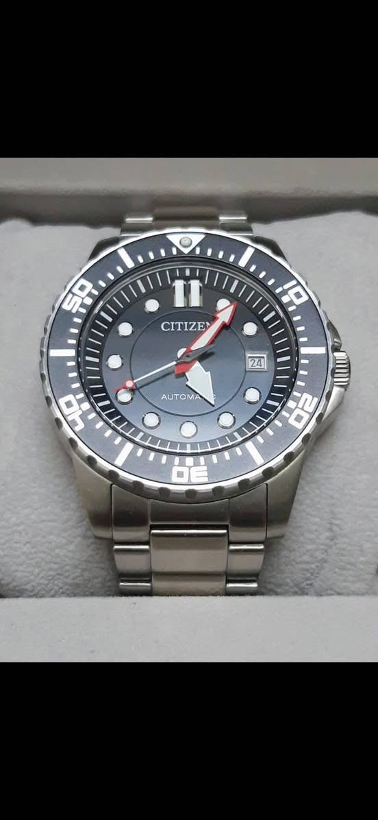 تحية طيبة #Citizen_Automatic_MensMechanical_Watch_AU . #سيتيزن انتاج اليابان ماكنة ميكانيك واوتوماتك Caliber 8210 ماكنة الذهبية الهيكل فولاذ مقاوم للصدأ مقاومة للماء 100 متر طوق دوار أميال وأرقام لامنوس مضيئ ليلآ قطر 43mm ملم نظافة 99/100 كامل المرفقات العلبة الأصلية . التواصل خاص لطفا السعر طيب ان شاء الله . الشحن والتوصيل متوفر لكل مكان . **إذا كنت صاحب هذا الإعلان وتريد حذفه لأي سبب، رجاءا أرسل رسالة إلى الدعم الفني**