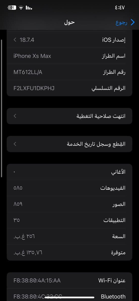 اكس ماكس • بطاريه ٨٠٪ • فيس ايد معطل