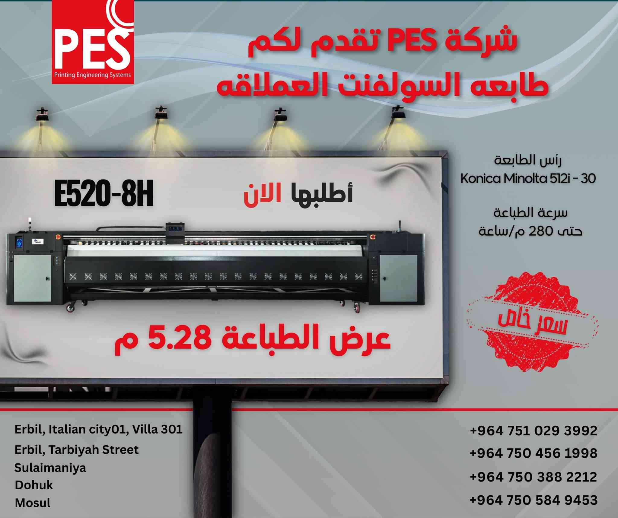 🚀 شركة PES تقدم لكم طابعة السولفنت العملاقة E520-8H إذا بدك إنتاج أسرع + جودة أعلى + عرض طباعة ضخم… هاي الطابعة هي الحل 💪✨ ✅ عرض الطباعة: 5.28 متر ✅ رؤوس الطباعة: Konica Minolta 512i - 30 ✅ سرعة طباعة تصل إلى 280 م/ساعة ✅ مثالية لـ: اللوحات الإعلانية، البنرات، الفلكس، الفينيل، والواجهات الكبيرة 🎯 📞 اتصل الآن واحصل على أفضل سعر! #PES #طابعة_سولفنت #طباعة_سولفنت #طابعة_عملاقة #ماكينات_طباعة #طباعة_إعلانات #طباعة_بنر #طباعة_فلكس #طباعة_فينيل #طباعة_واجهات #معدات_مطابع #طباعة_احترافية #سعر_خيالي #PES #SolventPrinter #LargeFormatPrinter #PrintingMachine #OutdoorPrinting #BillboardPrinting #FlexPrinting #VinylPrinting #BannerPrinting #Signage #PrintIndustry #KonicaMinolta #HighSpeedPrinting **إذا كنت صاحب هذا الإعلان وتريد حذفه لأي سبب، رجاءا أرسل رسالة إلى الدعم الفني**