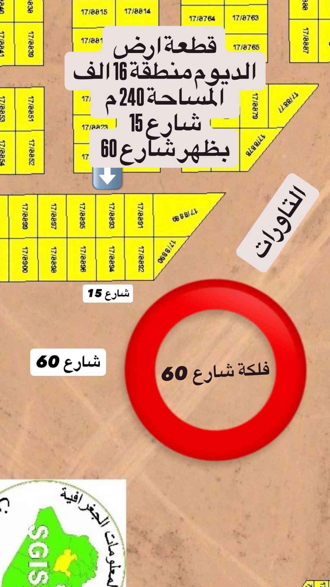 قطعة ارض الديوم منطقة 16 الف المساحة 240 م بظهر شارع 60 للأستفسار الأتصال ***********