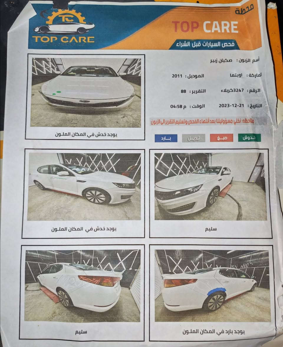 السيارة معروضة للبيع اوبتما خليجي 2011 مكفولة من الصبغ والتبديل كفالة عامة محرك وكير وحدادية قمارة بانوراما وسلايد روڤ بصمة تشغيل منظومة زنون كاملة تغليف جلد تبريد جيد رقم كربلاء مشروع وطني السنوية ل 2028 مكان السيارة بابل شارع 80 حلة _ نجف ***********