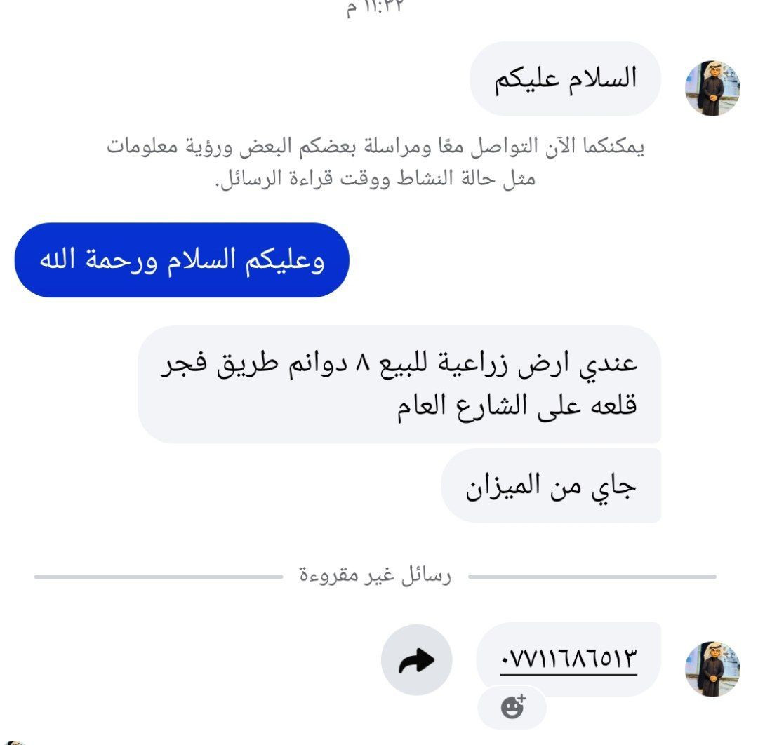 قطعه ارض زراعيه8دونم موقعه طريق قلعة فجر للبيع تفاصيل اكثر الاتصال على الرقم ***********