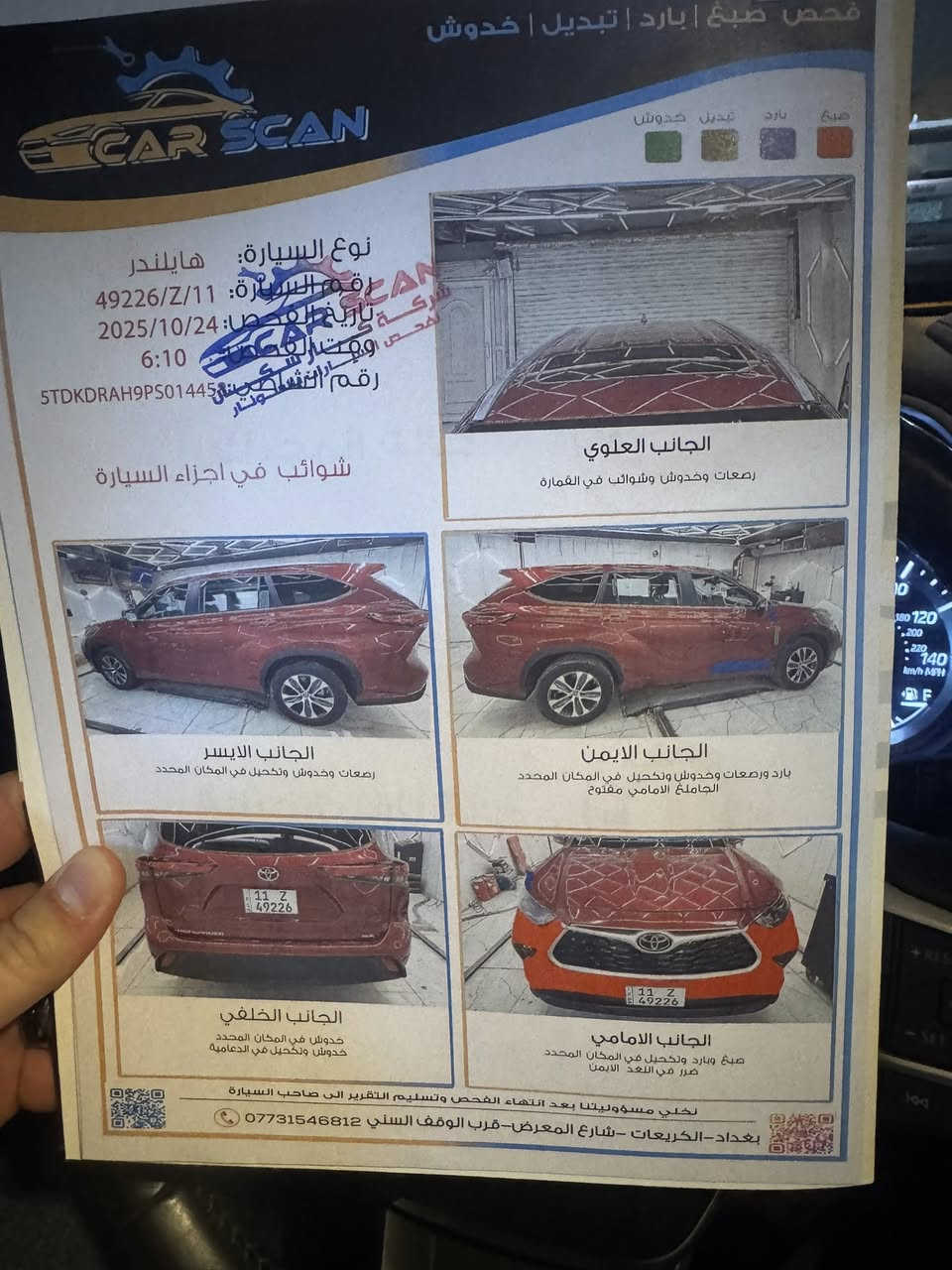 السلام عليكم .. للبيع . تويوتا هايلندر ٢٠٢٣ فئة XLE لونهة ماروني حلو المحرك ٢٥٠٠ توربو فول مواصفات توقف ذاتي تبريد مركزي تدفأة بالكشنات فتحة بصمة كشنات جلد ٧ راكب رادرات جانبية + اشاير مري كراسي كهرباء شاشة جبيرة + كامرا تبريد شاشة ٣ اظمة قيادة تعديل مسار تحديد سرعه صندوك كهرباء ماشية 74 الف كيلو متر قابل للزيادة الحادث جاملغ الامامي عكس السايق ومبدل نفس اللون بدون ايرباك وبدون صبغ .. مع ملاحظات بسيطة مرفقة بالسونار السيارة خير من الله شغل واطلع مابيهة ولاشي نقص رقم بغداد باسمي تحويل ثاني يوم للاستفسار *********** واتس اب