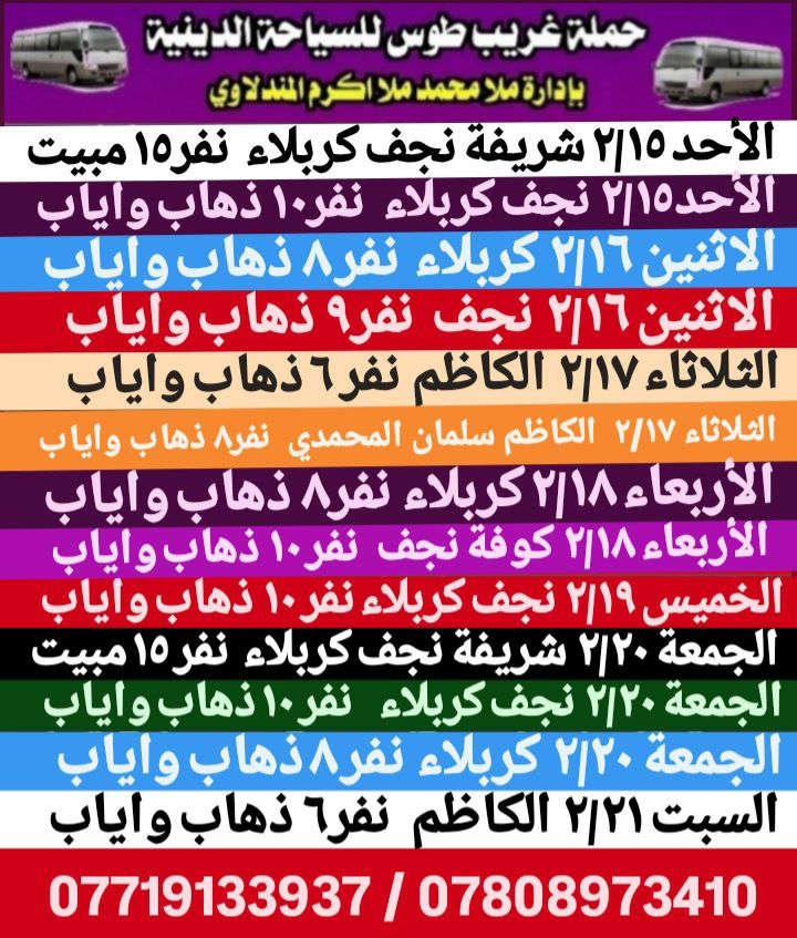 حملة ام البنين • رحلات باص • نجف كربلاء سامراء