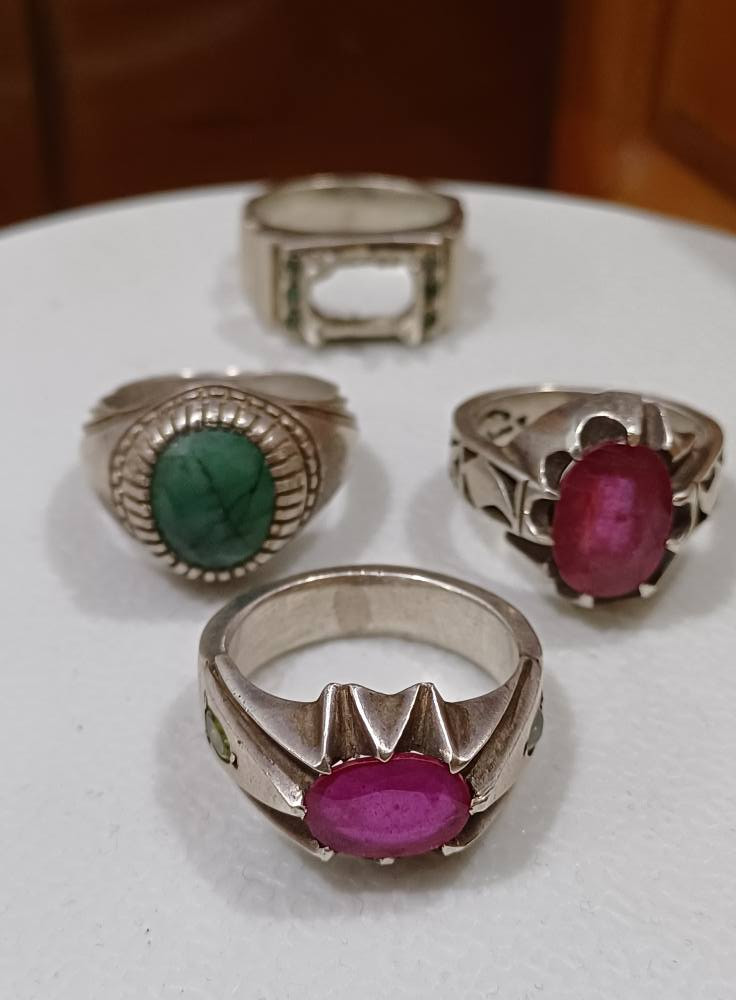 ٣ محابس صياغة ثقيلة ٢ ياقوت افريقي طبيعي وزمرد افريقي وقالب فضة 51 غرام ابيع شلعة وحدة شكد يسون وهذا رقمي للتواصل: ***********