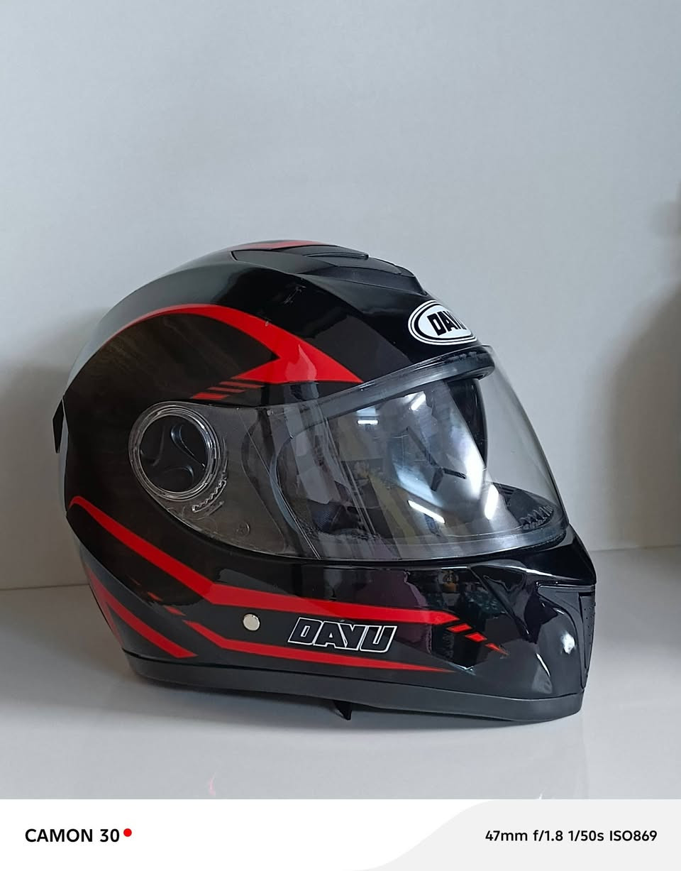 خوذة دراجات من ماركة(DAyu) للبيع استعمال قليل مرتين او تلاثة الخوذة نضيفة وجديدة اشتريتهة من الامزون بيهة شخطة بسيطة موضحهة بل صورة/1- جام تضليل وشفاف /2-(نضام حماية امريكي 218 )/3-(قياسm) قيم بل يرضي اللة واخذ مكان بغداد الكريعات (توصيل ماكو) **إذا كنت صاحب هذا الإعلان وتريد حذفه لأي سبب، رجاءا أرسل رسالة إلى الدعم الفني**