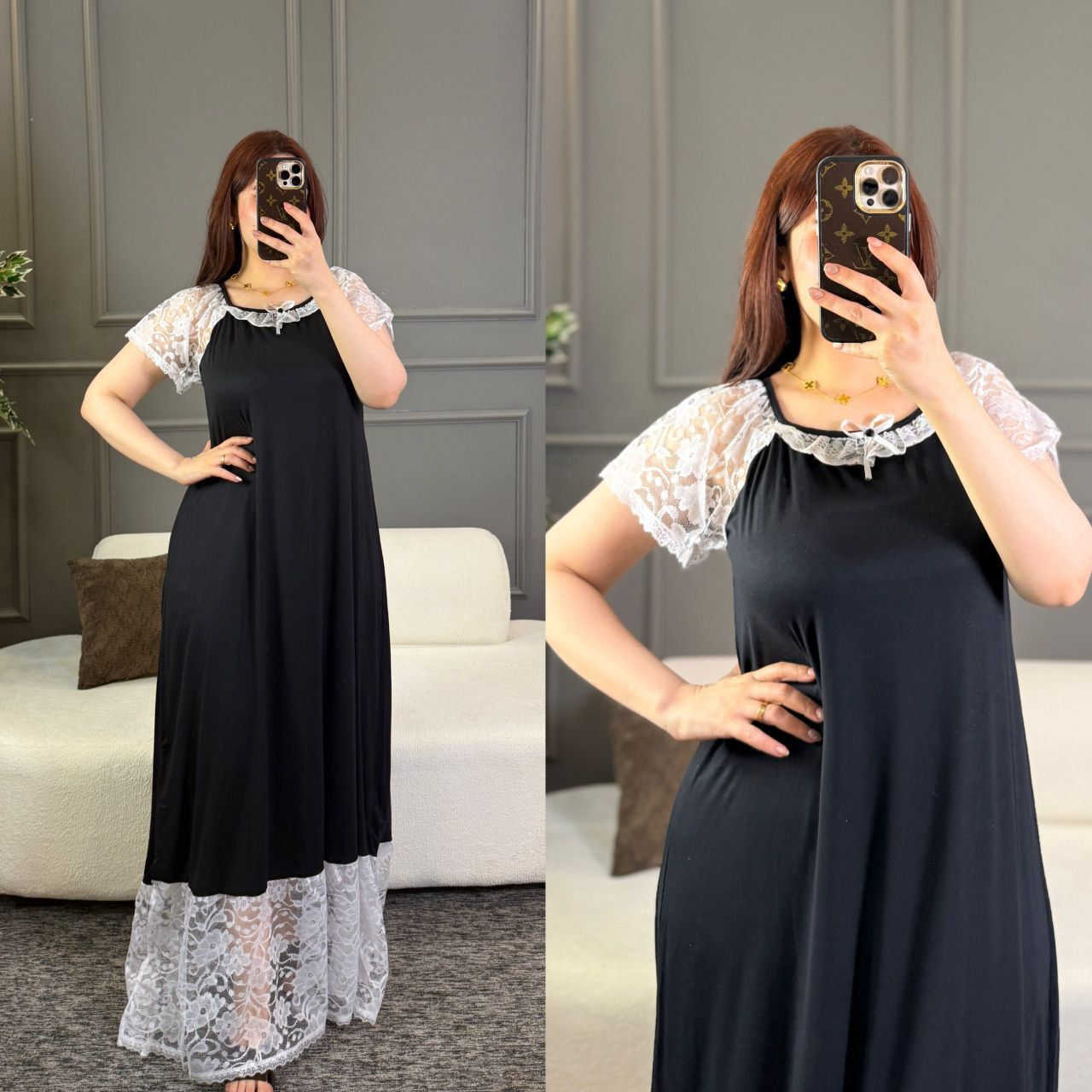 شلحه دبل كلوش • دانتيل • فري سايز 50-90 كغ