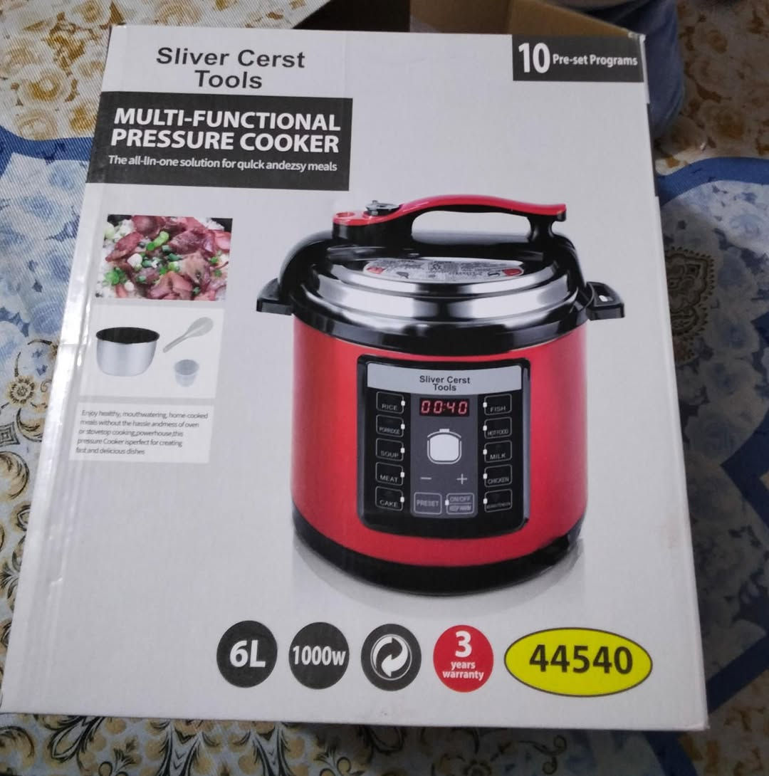 #قدر ضغط كهربائي متعدد الوضائف من Silver #السعه 6لتر #يحتوي علئ 10 برامج مضبوطه مسبقآ #مصنوع من الفولاذ المقاوم للصدأ #ياتي ضمان لمدة 3 سنوات ب45 **إذا كنت صاحب هذا الإعلان وتريد حذفه لأي سبب، رجاءا أرسل رسالة إلى الدعم الفني**