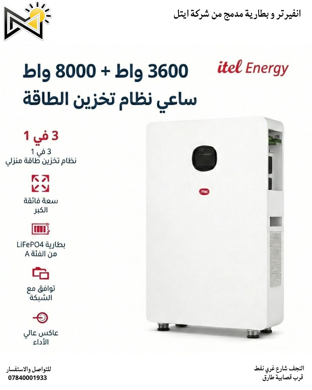 🔋 أنظمة تخزين الطاقة من إيتل 🌞 شركة المخزومي للطاقة الشمسية المتجددة تقدم لك أحدث حلول تخزين الطاقة الشمسية: ساعي نظام تخزين الطاقة 8000 واط + 3600 واط بطارية LiFePO4 من الفئة A عاكس عالي الأداء وتوافق مع الشبكة 📞 للتواصل: مفرد: *********** جملة: *********** دعم فني: *********** 📍 العنوان: النجف، شارع غري نفط، قرب قصابية طارق. #طاقة_شمسية #تخزين_الطاقة #طاقة_متجددة