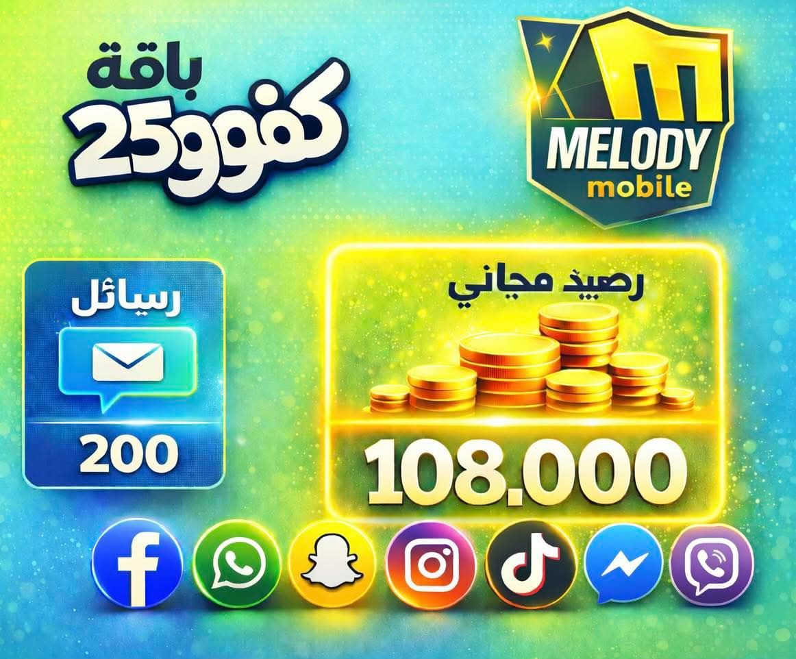 العرض الاقوى💪مع ميلودي 🔥 خط انترنيت كفوو الشهري يحتوي على 108الف رصيد مجاني و6 تطبيقات مفتوحة بـ13,000 دينار فقط🔥🔥 العنوان📍كركوك حزيران قرب تقاطع الحصو ورمل وعلى الخريطة في أول تعليق **إذا كنت صاحب هذا الإعلان وتريد حذفه لأي سبب، رجاءا أرسل رسالة إلى الدعم الفني**