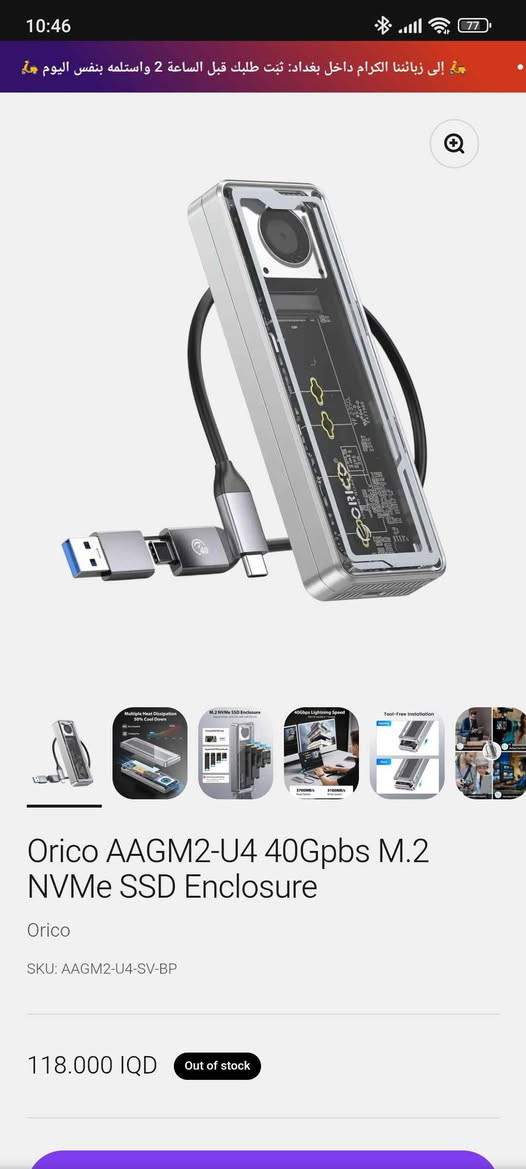 ORICO Aluminum Crystal 40Gbps M.2 SSD Enclosure with cooling fan راك اوريكو بسرعة هائلة مع مروحة تبريد للمحافظة على الأداء الثابت بغداد, العراق **إذا كنت صاحب هذا الإعلان وتريد حذفه لأي سبب، رجاءا أرسل رسالة إلى الدعم الفني**