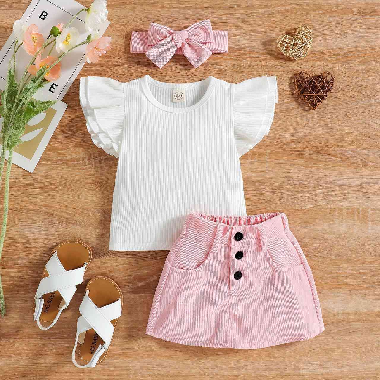 طقم بناتي • وردي كريمي • ١-٥ سنوات