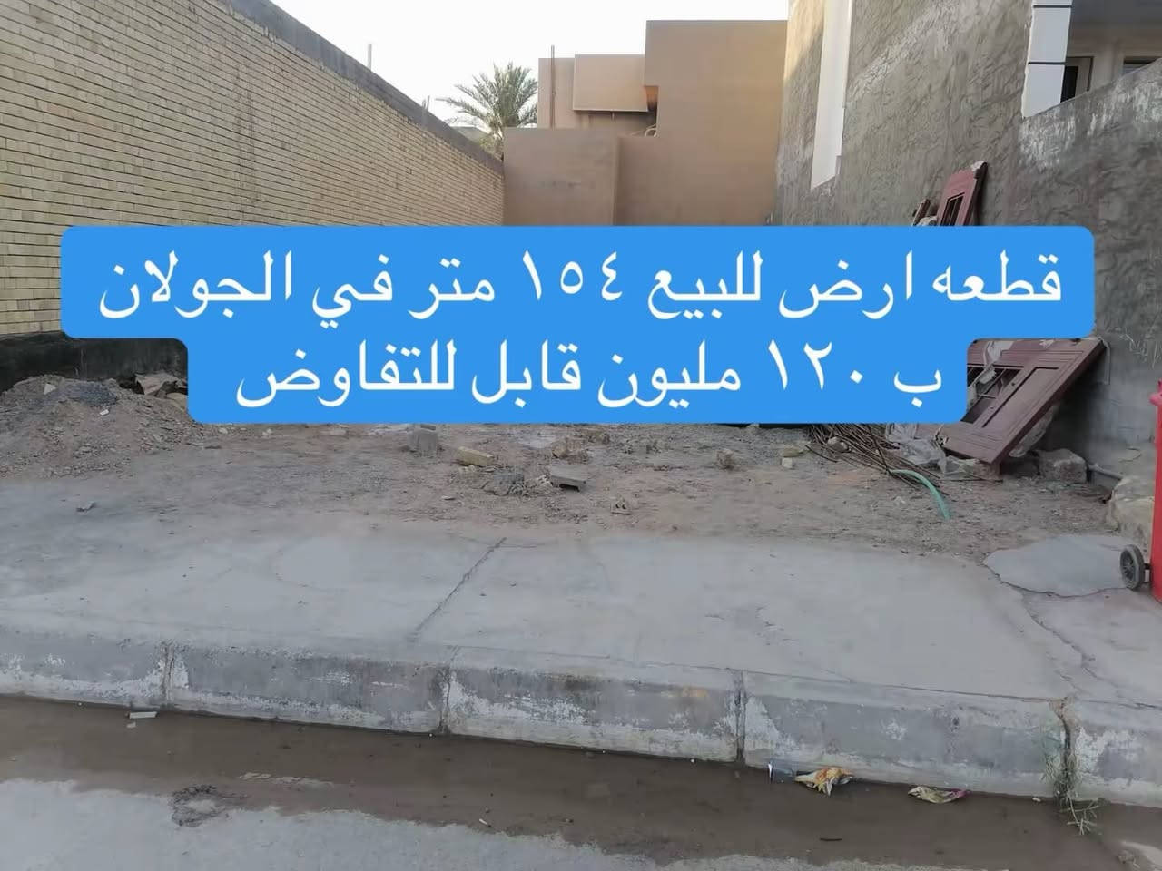⭕️ قطعة ارض للبيع في الفلوجة حي الجولان المنطقة الواقعة خلف مضيف الجريصات 📍طابو صرف سند باسم شخص واحد 📍المساحة: ١٥٤ متر 📍 شارع : ١٥ م مبلط 📍الوجه: ٧،٧٥ م علماً ان الارض مدفونه ومحدولة بحادلة كبيرة 🟢السعر : ١٢٠ مليون دينار عراقي وبي مجال **إذا كنت صاحب هذا الإعلان وتريد حذفه لأي سبب، رجاءا أرسل رسالة إلى الدعم الفني**