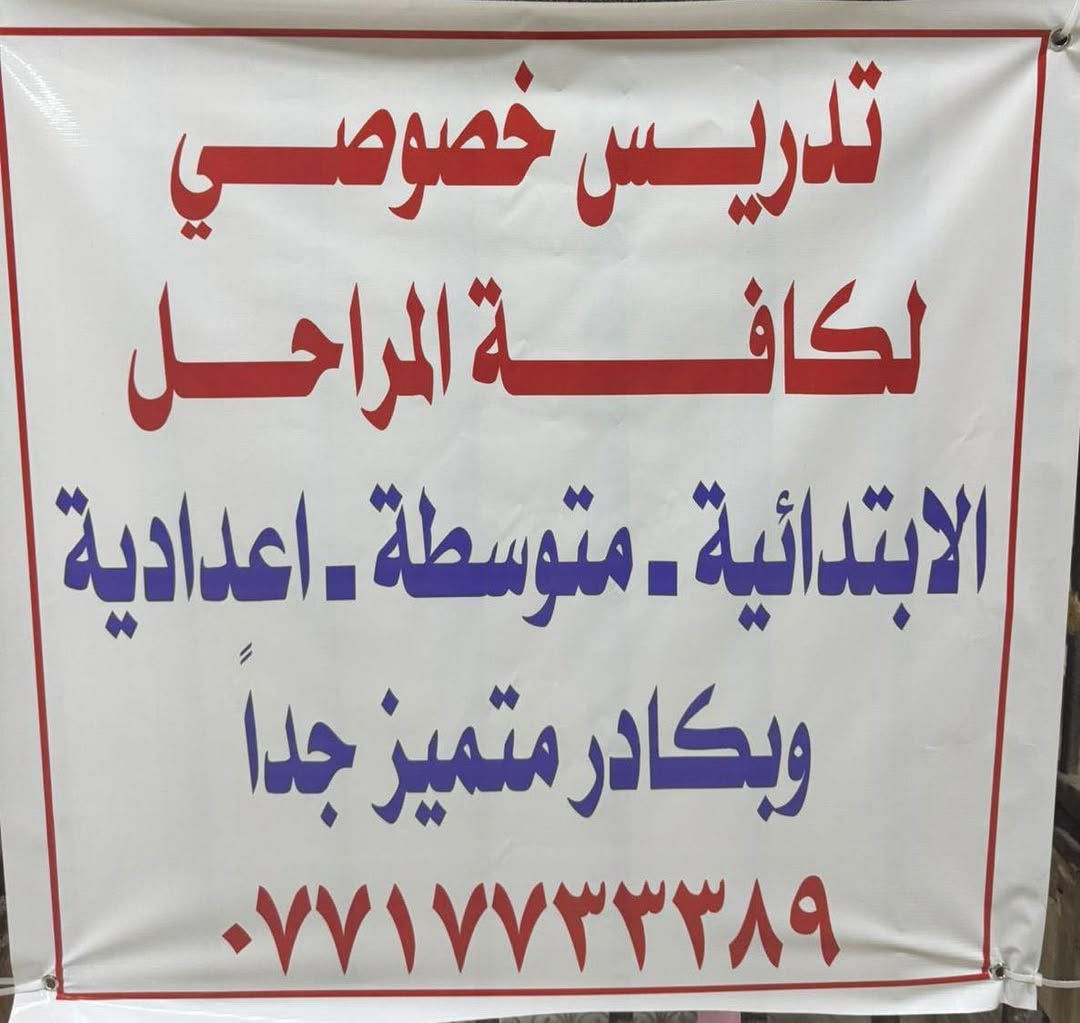 🔴 تدريس خصوصي لكافة المراحل 🔴 ━━━━━━━━━━━━━━━ 🔵 الابتدائية – المتوسطة – الإعدادية 🔵 📚 تأسيس قوي من الصفر 📖 شرح مبسّط بأسلوب سهل وواضح 📝 حل واجبات ومراجعة يومية 🎯 تحضير امتحانات شهرية ونهائية 🏆 اهتمام خاص بطلبة البكالوريا ✨ نتائج ممتازة بإذن الله ✨ متابعة مستمرة مع ولي الأمر 📍 المكان: (زيونة 710) 📞 للحجز والاستفسار:***********