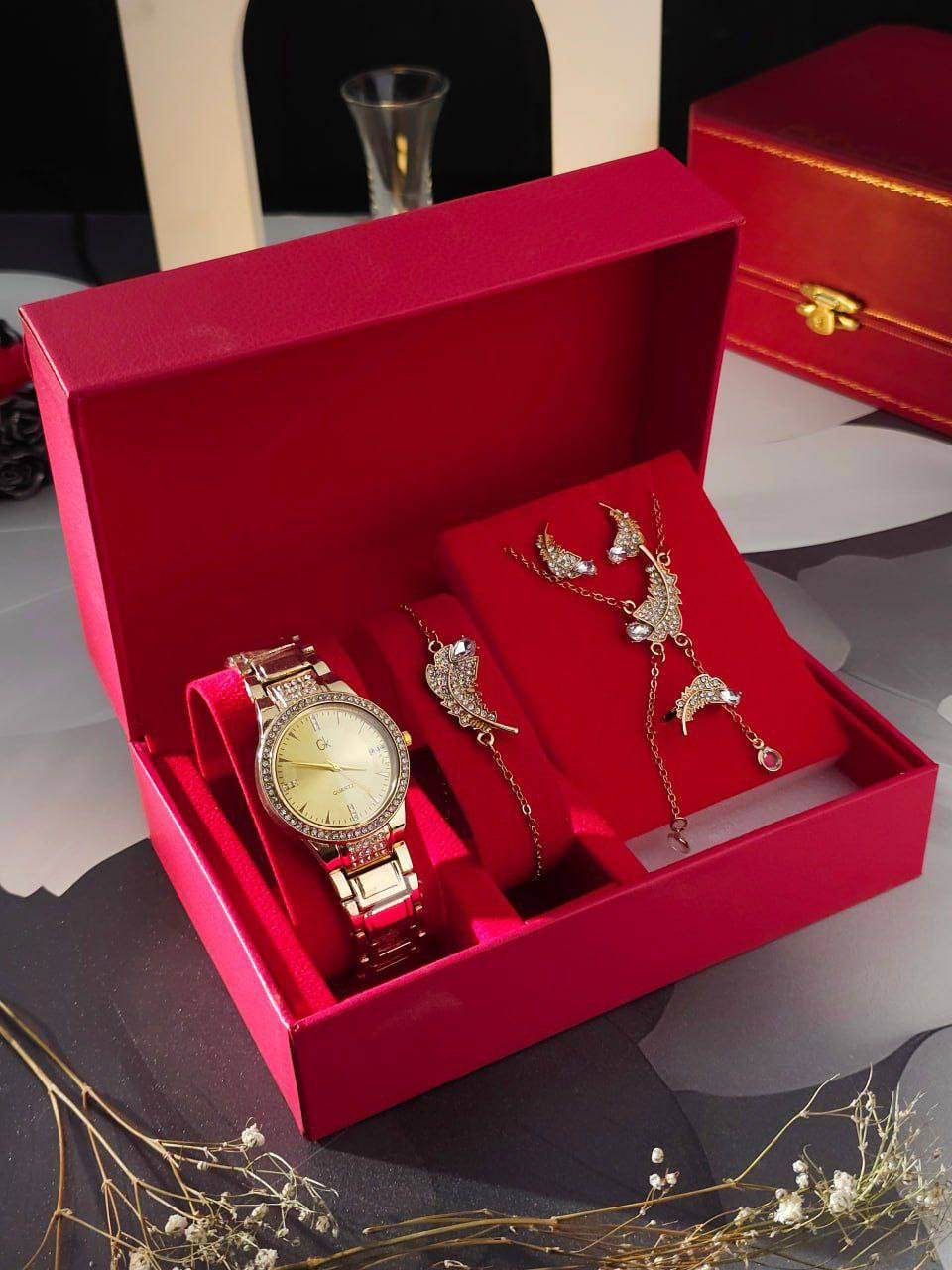 هدايا عيد الحب • طقم فاخر • ساعة ذهبية