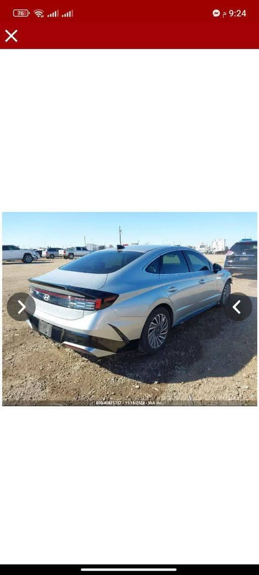 السلام عليكم هونداي سوناتا هايبرد للبيع موديل السياره 2024 وارد امريكي اللون سلفر مواصفات Sel مكينه 2000 دوش السياره ماشيه 25 الف ميل سياره حادثها جاملغ مصبوغ بدون دواخل وبارد ب الباب ايرباك فقط الدوسه رقم بغداد باسمي سعر : 215 مكان السياره بغداد الغزاليه اي استفسار : ***********