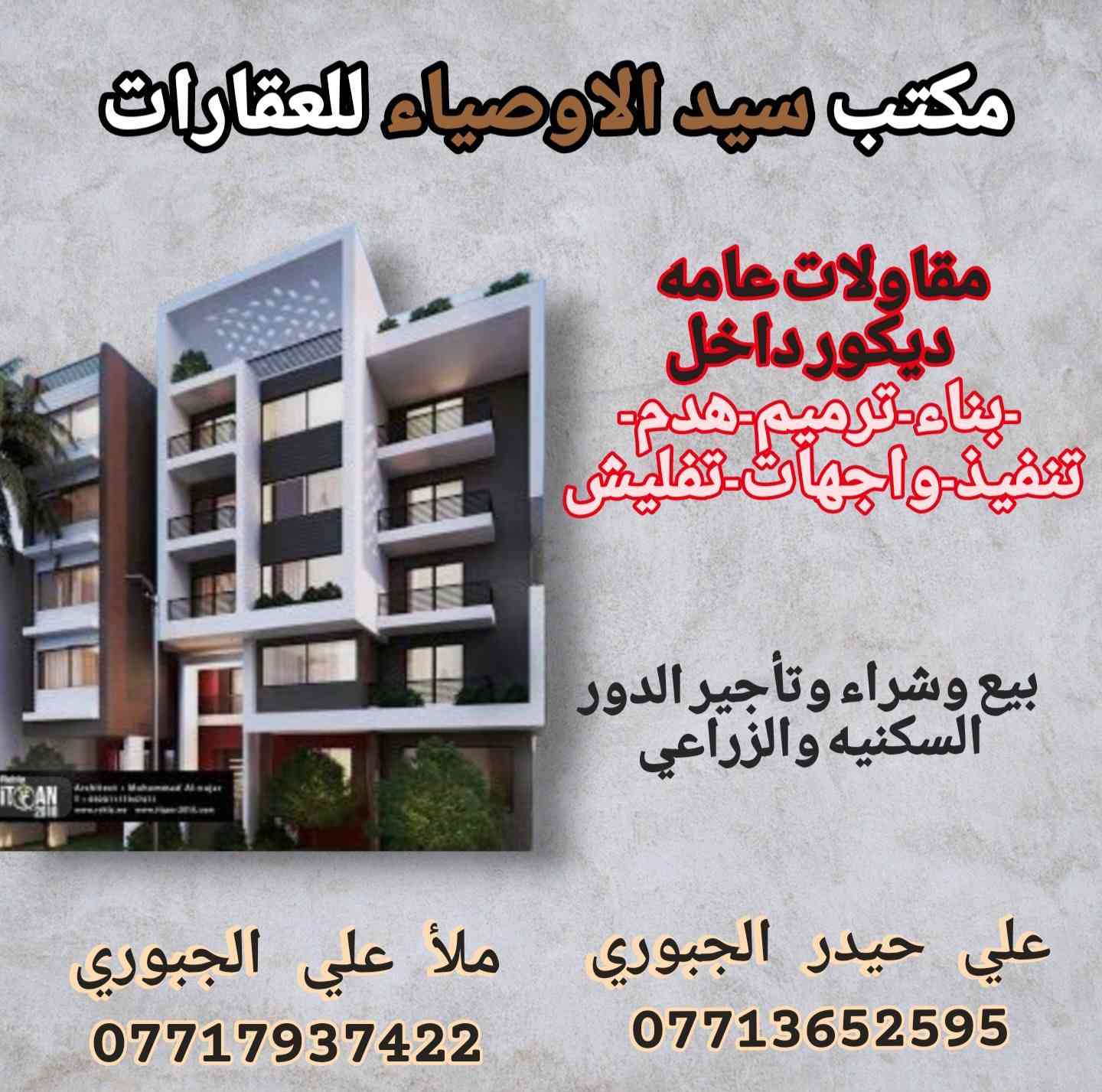 عروض دور وقطعة اراضي للبيع مكتب سيد الاوصياء للعقارات 🏢 🏤 🖥 1.قطعة ارض للبيع المساحه ٥٠٠م² الموقع بغداد الكريعات حي راية الحشد السعر المتر مليونين ونص وبي مجال 2. ثلاث دور للبيع المساحه ٥٠ متر قيد الانشاء تسليم مفتاح الموقع بغداد الكريعات الكويتي السعر عن الأرقام 3. قطعة أرض المساحه ١٠٠م² الموقع بغداد الكريعات شارع ١٠ السعر المتر مليون ونص وبيها مجال 4. قطعة أرض المساحه ١٨٠م² الموقع بغداد الكريعات شارع ١٠ سعر المتر مليون ونص وبيها مجال 5. دار للبيع المساحه ٦٠م² الموقع بغداد الكريعات حي راية الحشد السعر 75 مليون وبي مجال 6. ثلاث دور للبيع المساحة ٥٠م² الموقع بغداد الكريعات شارع شيخ شبلي السعر الدار تسليم مفتاح ١٠٠ مليون وبي مجال 7. دار للبيع المساحه ٥٠م² الموقع بغداد الكريعات شارع هيثم الحداد السعر ٩٠ وبي مجال 8. دار للبيع المساحه ٥٤م² الموقع بغداد الكريعات شارع العياده الشعبيه السعر ٧٥ وبي مجال بسيط 9. دار للبيع المساحه ٧٠م² الموقع بغداد الكريعات شارع العياده السعر ٩٠ وبي مجال بسيط 10. دار للبيع المساحه ٦٨م² الموقع بغداد الكريعات شارع نضير ابو نايله السعر ١٣٥ وبي مجال الاستفسار اكثر عله الارقام التاليه مكتب سيد الاوصياء للعقارات *********** علي حيدر *********** *********** ملأ علي