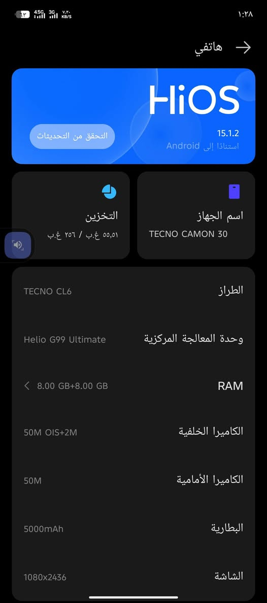 السلام عليكم تكنو كامون 30 مراوس مبدل ظهر والبصمه واقفه مراوس فقط **إذا كنت صاحب هذا الإعلان وتريد حذفه لأي سبب، رجاءا أرسل رسالة إلى الدعم الفني**