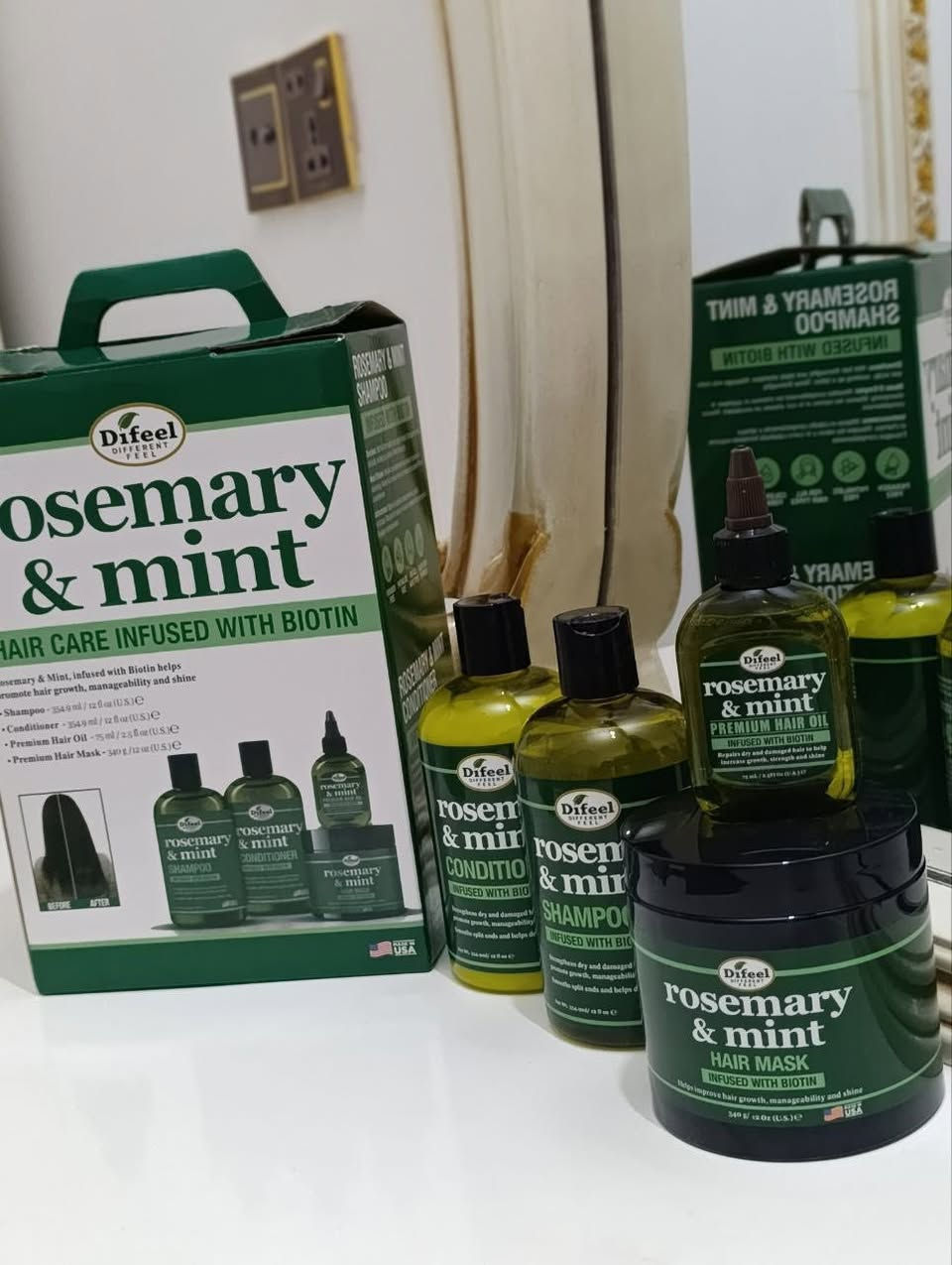 أطلبي البكج وأختاري هديتـج من المتجر🛍 🎁😍 ( ديرمارولـر أو مشط توزيع أو فرشـة تدليك أو خاولي كوري ) 💚 بكج روز ماري والنعناع rosemary & mint الأكثـر طلبآ الأصدار الجديد وبسعر خورافي داخل بوكس 🫢 يحتوي على خلاصة الروزماري (اكليل الجبل) والنعناع والبايوتين خصم 50% 👍🏻بكج ميلي بـكـج يتـكون من 4 قطـع : 🍃 شامبو 354ml 🍃 بلسم 354ml 🍃ماسك للشعر 340ml 🍃 سيروم اكليل الجبل 75ml ينظف الشعر بشكل قوي يعالج تساقط الشعر يعالج القشره يعالج الحكه يقوي الشعر يكثف الشعريعمل على انبات الشعر يعالج التقصف والتكسرمناسب لجميع انواع الشعر الدهني والجاف " الأمريكي الأصلي 💀 **إذا كنت صاحب هذا الإعلان وتريد حذفه لأي سبب، رجاءا أرسل رسالة إلى الدعم الفني**