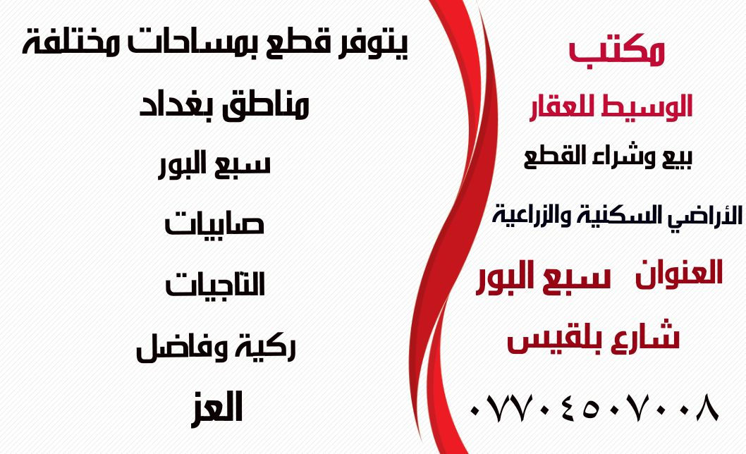 مكتب الوسيط للعقار سبع البور شارع بلقيس بيع وشراء القطع الأراضي ***********