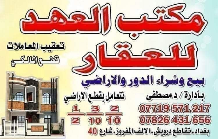 سلام عليكم جميعا متوفر عروض مناسبة وجاهزة في مقاطعتين (3/10 او 2/10 اومالمالكي) 🔴🔴🔴🔴🔴🔴🔴🔴🔴 1_ الي يريد تقيم (بدون مقابل) 2_ عندك قطعة للبيع احنا نشتري 3_ مصاريف بيان علينا 4_ نتكاتب مباشر وفلوس كاش 5_ اذا عندك قطعة نعرضها الك 🔴🔴🔴🔴🔴🔴🔴🔴🔴 أي استفسار تفضل خاص او اتصل *********** وتساب د.مصطفى.....