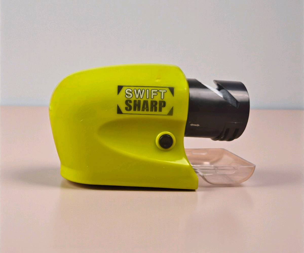 جهاز شحذ سكاكين كهربائي بدون سلك من نوع Swift Sharp، عملي وسهل الاستخدام لشحذ السكاكين والمقصات والأدوات المنزلية الصغيرة. مثالي للحصول على شحذ دقيق وقوي في وقت قصير.