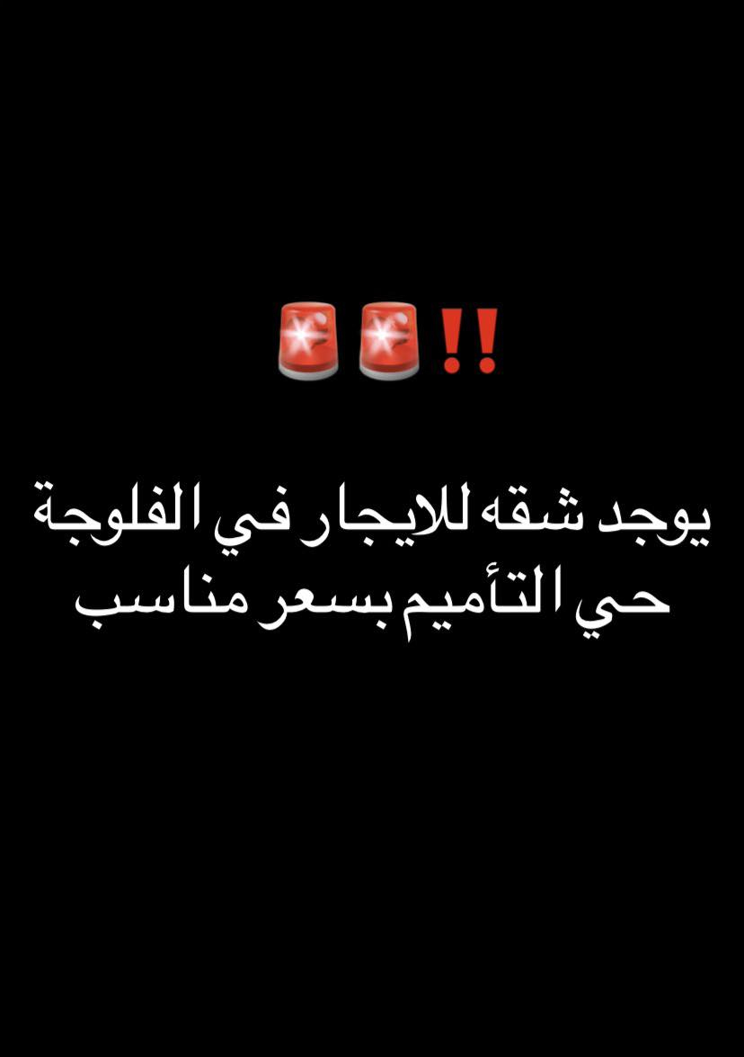بسم الله الرحمن الرحيم يوجد شقه للايجار في حي التأميم الفلوجة قرب حي النزال الشقه تحتوي على غرفه وصاله ومطبخ وصحيات سعر الايجار 200 الف وبيها مجال بسيط للاستفسار: ***********