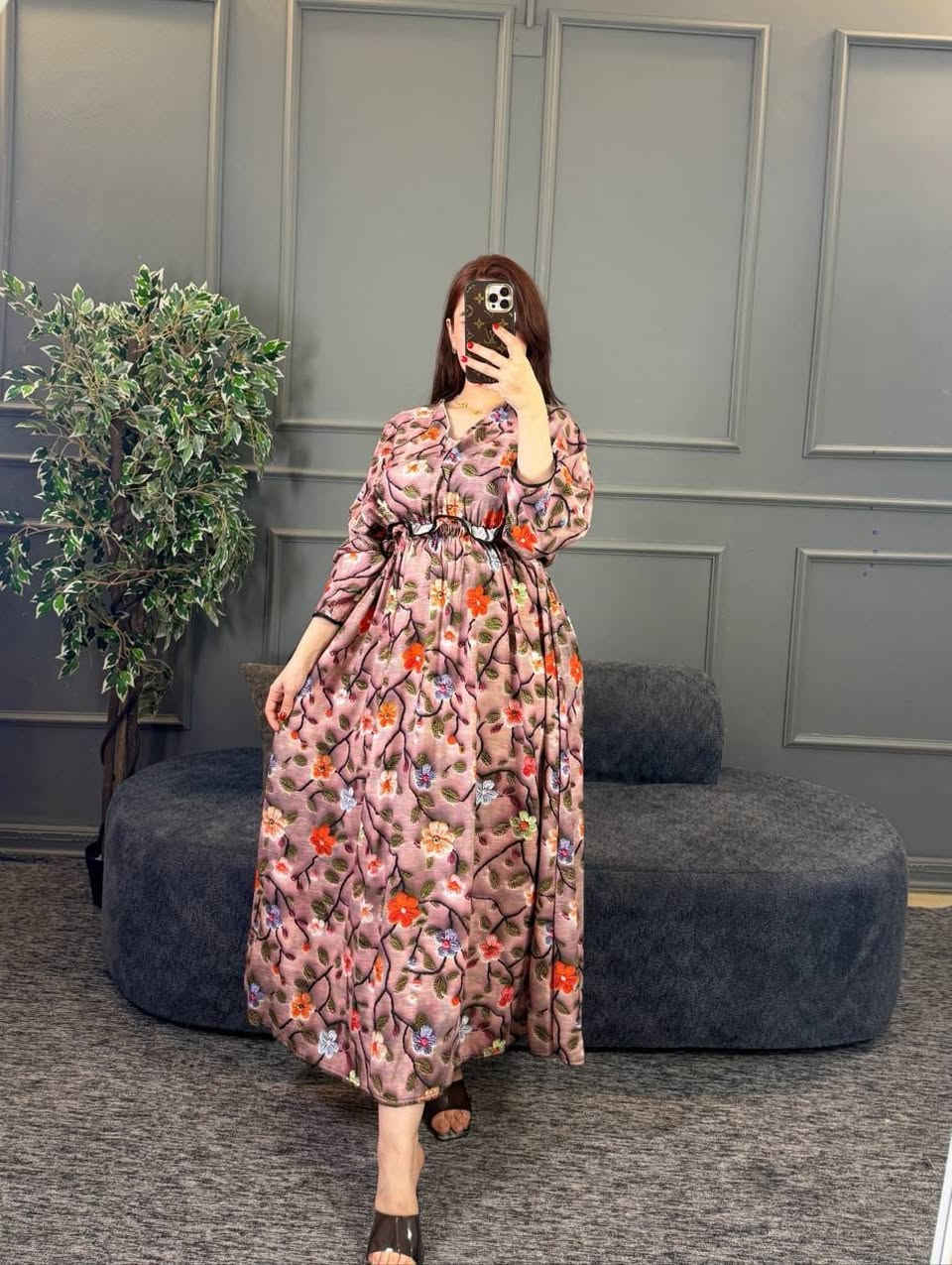 دشداشة نسائي • كشمير سيلين • فري سايز ٩٠ كيلو