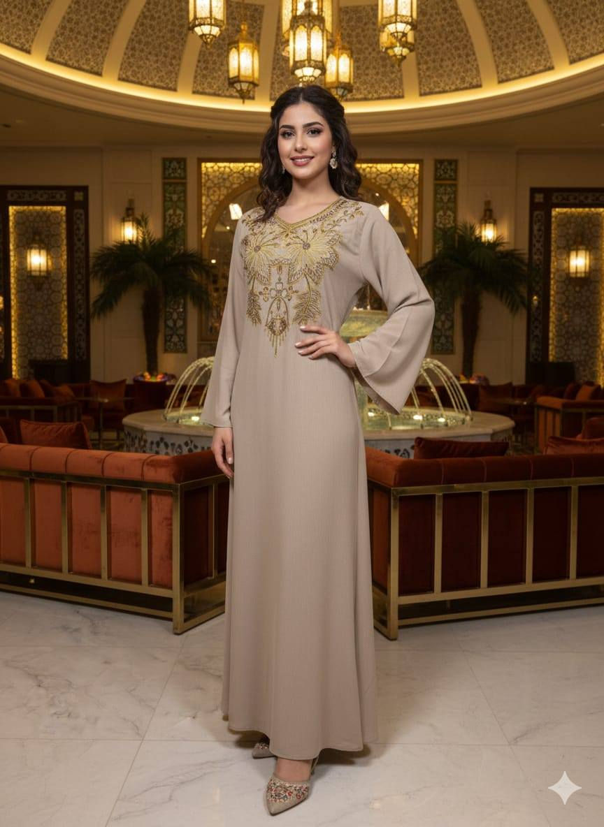 جلابية فاخرة • حرير العروسه • تطريز ذهبي