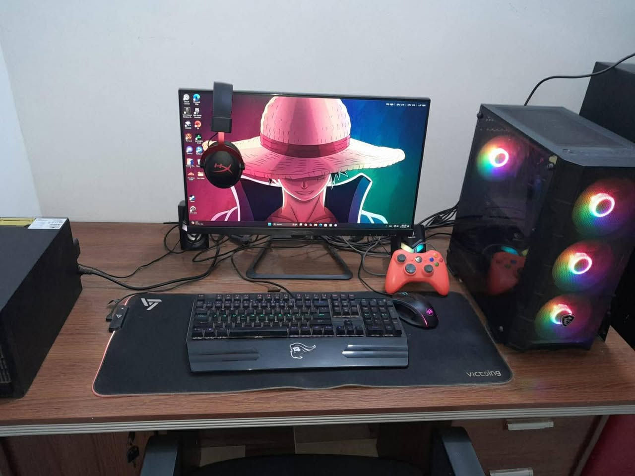 تجميعة كاملة مع اكسسوارات, ميز و كرسي للبيع الكيس i5-10400f GTX 1660 SUPER 16GB 2x8GB 3200MHZ Gigabyte H510 500g M.2 SSD 1TB HDD الشاشة Gameon 1080P 24" 165hz الups Farber Online 1KV الملحقات Redragon Mouse rgb Redragon mechanical Keyboard rgb HyperX Cloud 2 Wired 7.1 Xbox 360 Controller ميز مثل ما موضح بالصورة و نظيف كرسي mesh بحالة جيدة جداً بغداد الشعب *********** للتواصل واتساب او خاص