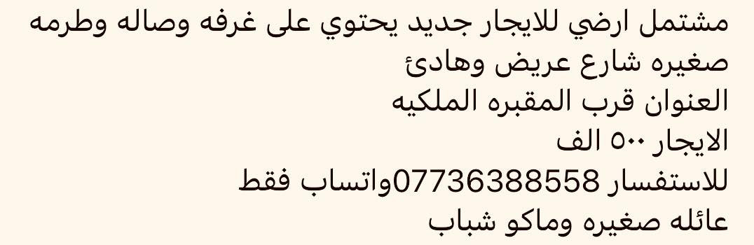 شقه ارضيه • الاعظمية شارع عشرين • غرفتين وصاله