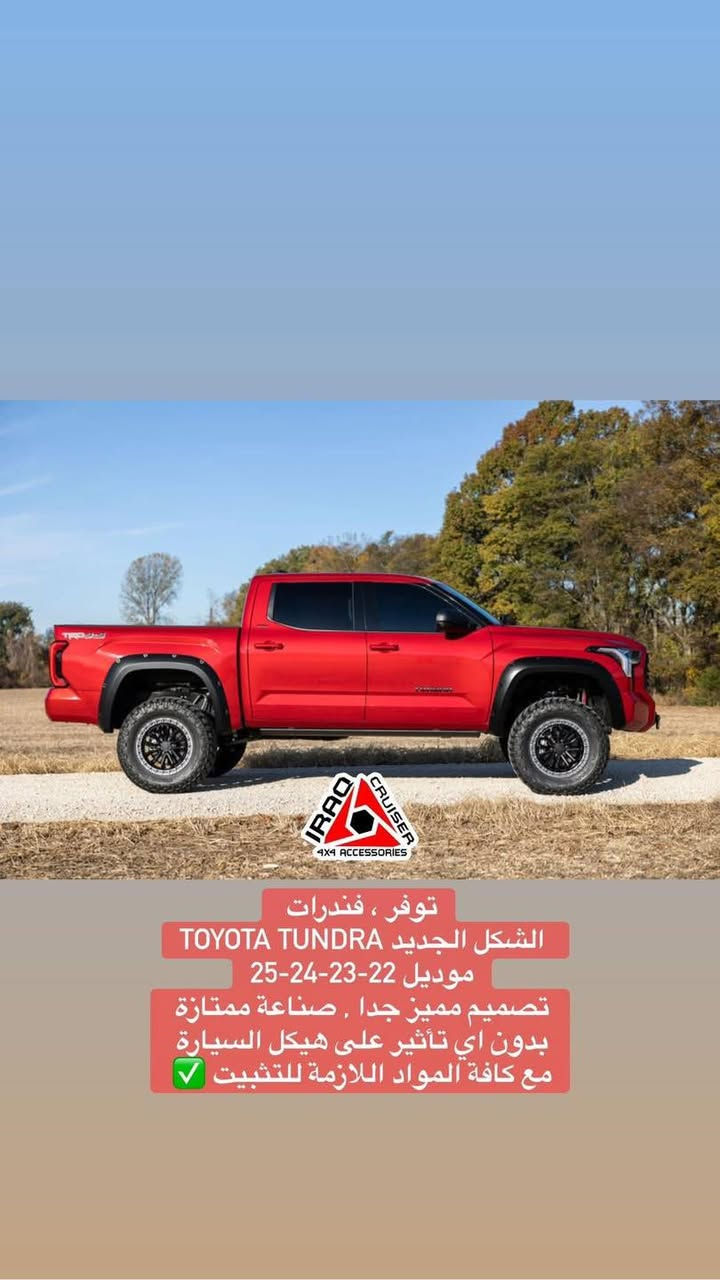 بسعر 200 الف فقط فندرات تندرا Toyota tundra الشكل الجديد موديل 22-23-24-25 تصميم مميز جداً صناعة ممتازة بدون اي تأثير على هيكل السيارة مع كافة المواد اللازمة للتثبيت ✅ ———————————————- 📍عنواننا/ بغداد الشعب حي عدن التوصيل متوفر لكل العراق *********** ❗️الكمية محدودة